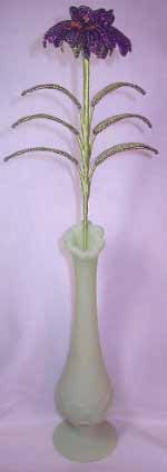 The calyx (the cuplike structure under the flowerhead) is constructed using the Victorian or Ladder method for beading flowers; whereas, the flower petals and leaves are constructed using the French method.